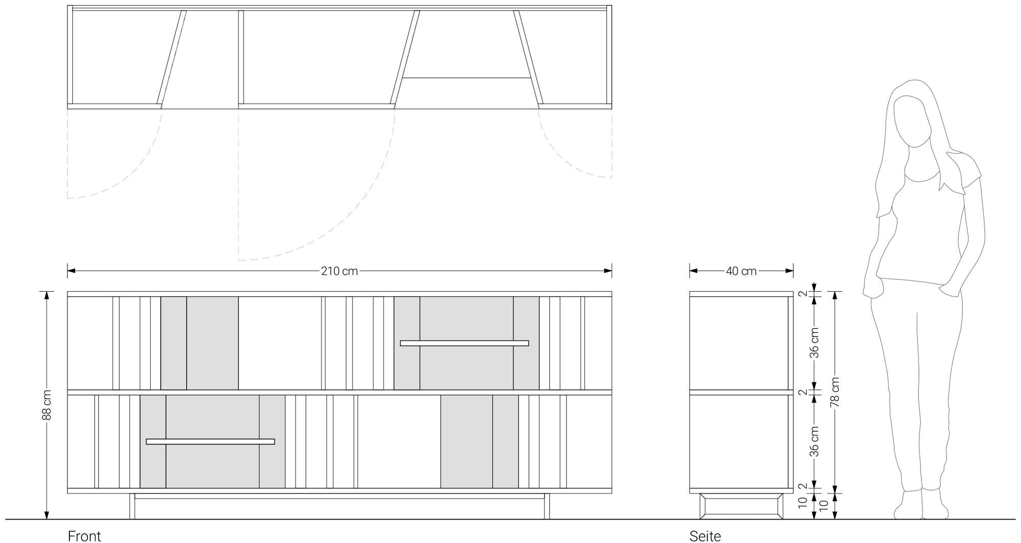 Mit großzügigem Stauraum bietet das Sideboard genügend Platz für Ihre Gegenstände und hilft dabei, Ordnung zu halten. Ihre Bücher, Dekorationsartikel oder persönlichen Dinge finden hier einen perfekten Platz.
