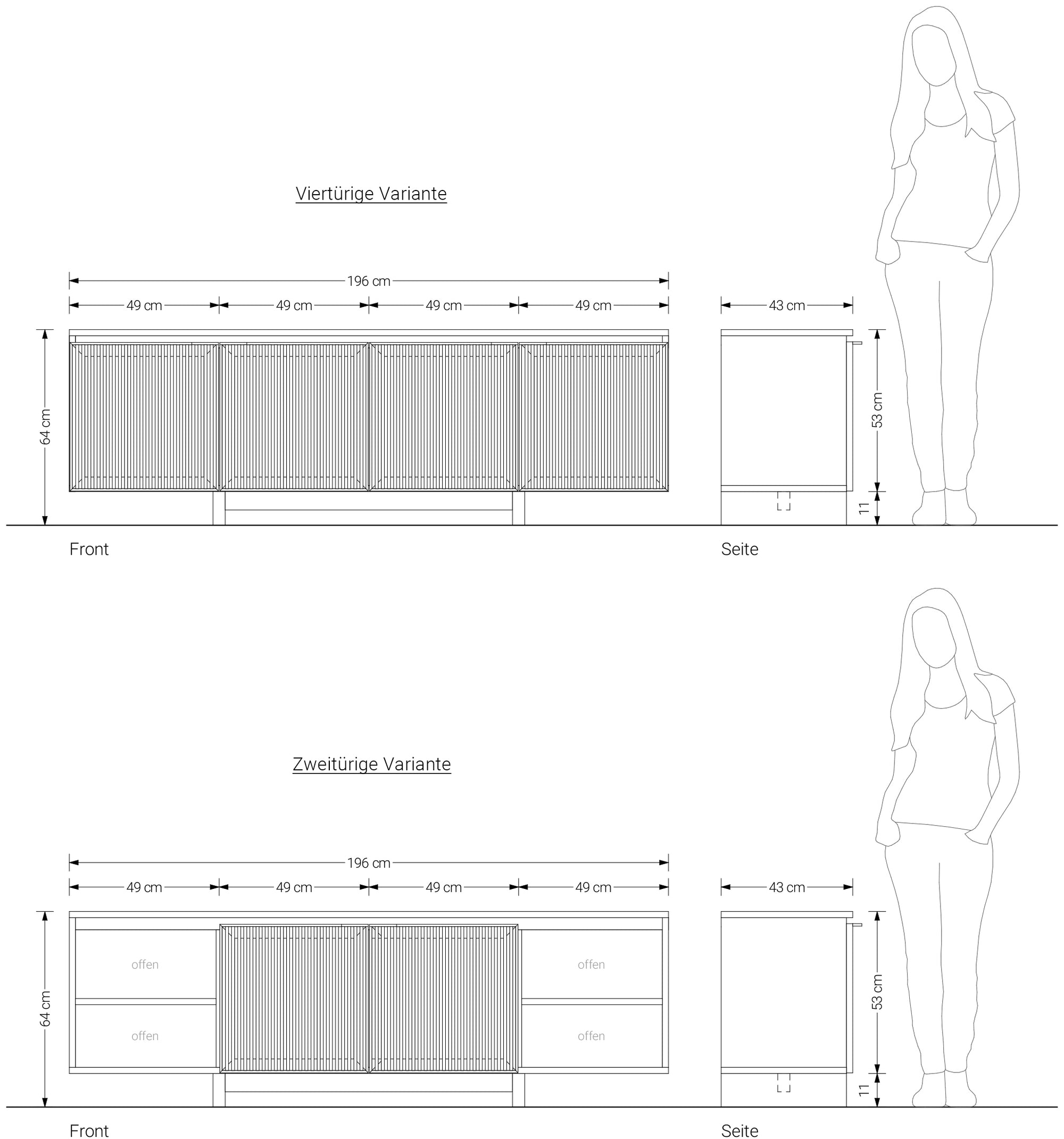 Mit diesem Lowboard schaffen Sie gezielt Stauraum und durch die Türen in moderner Lamellenoptik wird eine ordentliche und aufgeräumte Optik gewährleistet.