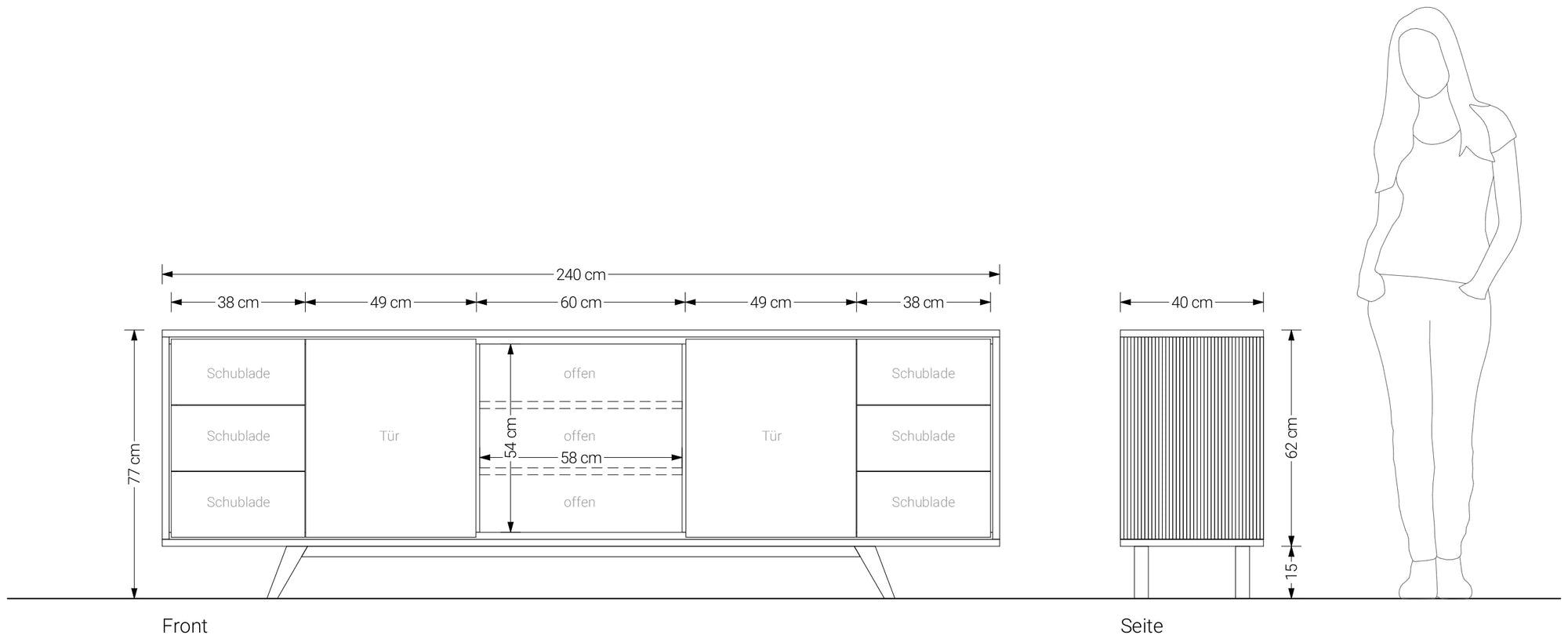 Das Designer-Sideboard ist ein echter Blickfang in jedem Raum. Das elegante und moderne Design ist perfekt für Menschen, die ihren Wohnraum aufwerten möchten und Wert auf eine stilvolle Einrichtung legen.